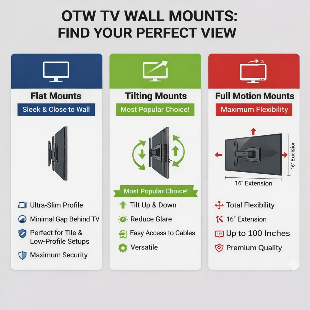 Choose the Right Type: Fixed, tilt, swivel, or full-motion